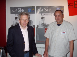 Auf dem Foto (v.l.n.r.): Rainer Landwehr (Patenmodell -Arbeit durch Management), Matthias Liehr (Freiwilligenbörse auf Draht Hamburg)